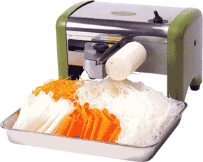 Will cut tsuma to serve 100 person in a matter of 5 minutes. Katsura cutting by hand requires years of training but this machine will do the job instantly. Very popular for use in high class restaurants, tourist inn, wedding halls, hotels, sushi bars, caterer’s shops, etc. Will cut 1kg per minute.